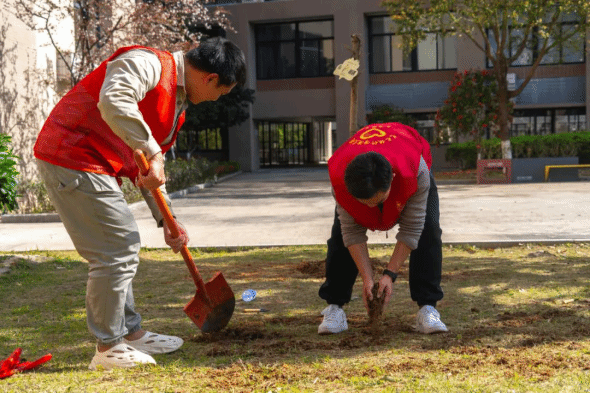 为深入贯彻落实“绿水青山就是金山银山”的绿色发展理念,切实增强爱绿植绿护绿意识,传承新时代雷锋精神,深入开展党员志愿服务活动,2024年3月12日下午,开云kaiyun登录入口学生第三党支部在福商艺苑前开展以“雷锋月·静待花开”为主题的义务植树主题党日。
