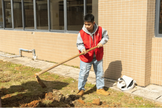 随后,支部党员同志们便来到福商艺苑广场开展种花活动。他们有的手持铁锹、有的提水桶等工具,热情洋溢地投入到种花活动中。大家分工合作,默契配合,现场一片繁忙而有序的景象。参加这次活动的潘凌翔同学说:“这次的植树节活动让我体验到了植树的快乐和特有的意义,希望我们播撒的种子能够早日开花,给我们的校园增添色彩。”林承泽同学说:“三月是学雷锋月,雷锋同志不怕苦、不怕累的精神深深的影响着我们。我们要学习雷锋精神,让三月的花温暖整个校园。”