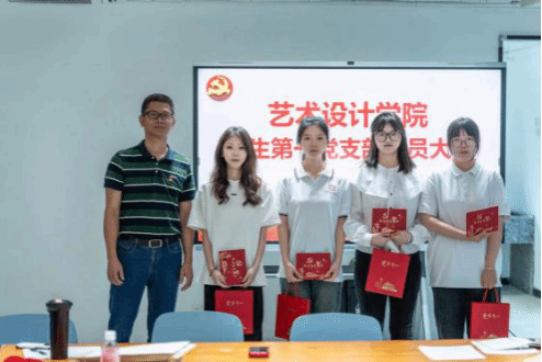 会议现场 本次会议严格按照中国共产党发展党员工作流程中接收中共预备党员的程序进行,讨论许晴、杨依玲等4位同志被接收为中共预备党员。郭锦辉副书记为她们颁发政治生日贺卡。