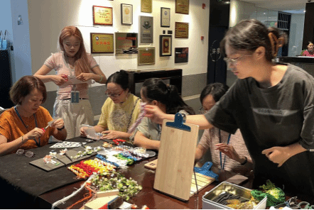 随后,郑苏青书记身体力行,亲自参与到非遗漆扇与绒花的制作体验中。在党员干部的悉心指导下,她仔细聆听、认真操作,与在场的党员干部们一同感受传统工艺的魅力与匠心独运。这一环节不仅加深了党员干部们对非遗文化的认识与理解,更激发了大家保护传承非遗文化的热情与责任感。
