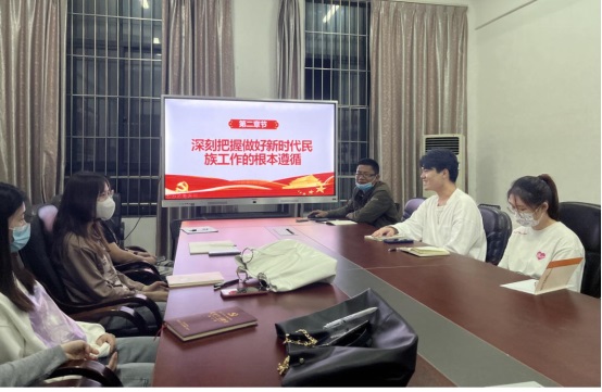 为了深入学习以习近平同志为核心的党中央立足新时代的历史方位统筹谋划和推进民族工作,科学回答了新时代民族工作举什么旗、走什么路等重大问题。2022年4月11日晚,郭锦辉副书记围绕“抓住铸牢中华民族共同体意识这条主线”给学生党员上了一堂生动的党课。