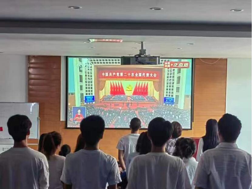 2022年10月16日,中国共产党第二十次全国代表大会在北京人民大会堂隆重开幕。开云官网党政领导班子、教师代表和学生代表分别在连江校区福商艺苑和鼓楼校区集中观看开幕会直播,认真聆听习近平代表第十九届中央委员会向大会作的《高举中国特色社会主义伟大旗帜 为全面建设社会主义现代化国家而团结奋斗》的报告。
