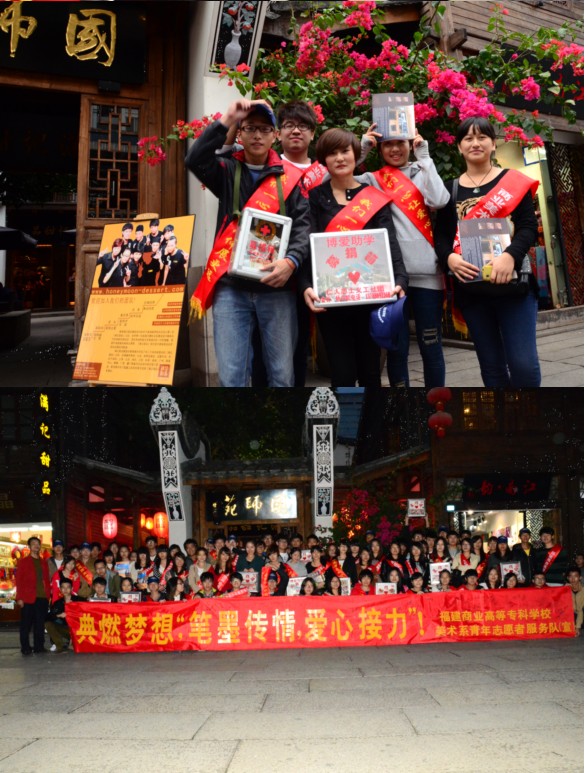 为了增强大学生与社会的联系,让更多的青年志愿者走进不同的生活环境,体验社会,展现自我,发挥出自己的爱心。同时尽己所能,给贫困山区的孩子提供一些力所能及的帮助,奉献我们的爱心,把友爱与宽容的种子撒播到各个角落,让宁化,永泰的贫困学生们感受到课堂外的关怀和帮助,能够真正解决当前出现的问题。商业美术系青年志愿者服务队与福州仁人志士义工社团合作开展爱心募捐活动。本次活动商业美术系共70名青年志愿者,分成10个小组在福州的多个地点进行义卖募捐。活动当天共募捐到了一万一千两百七十元的爱心款。