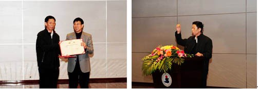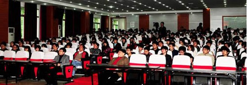 讲座上,张玉田先生以亲身的体会阐述了艺术与生活以及大学生为人处世之道,语言平实、事例生动,精彩的讲演赢得了现场阵阵的掌声。讲演结束后,黄克安校长代表学校向张玉田先生颁发了聘请书,特聘张玉田先生为商业美术系客座教授、福商画院名誉院长。