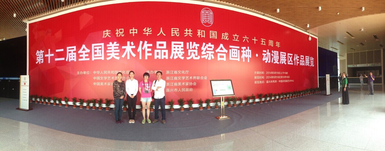 2014年9月19日,动漫教研室专业带头人范治明老师组织教研室全体老师赴嘉兴参观第12届全国美展。