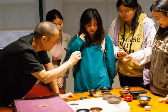 在讲座过程中,张中钦老师展示了各具特色的建盏作品,并现场进行了精彩的陶艺制作示范。同学们纷纷向张中钦老师请教建盏工艺与创作思路的问题,并动手体验了其中的乐趣,激发了自己的创作热情。