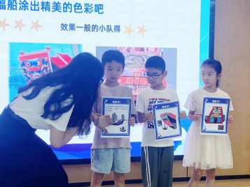 经过一系列紧张而有趣的研学任务挑战后,实践队公布了各小队的排名情况,为孩子们展示并颁发了他们精心设计的文创礼品。这些文创礼品通过创意与设计的融合,不仅将福建独特的海洋文化元素以生动、有趣的形式展现出来,还蕴含着深刻的文化热爱和教育意义。实践队成员细心地为孩子们讲解每一件礼品的设计理念,让孩子们在欣赏美的同时,感受到海洋文化的博大精深和本土文化的独特魅力。孩子们手捧礼品,脸上洋溢着满足和自豪的笑容。这一刻,不仅是对他们努力付出的肯定,更是对他们未来能够继续探索海洋知识、传承本土文化的鼓励与期许。