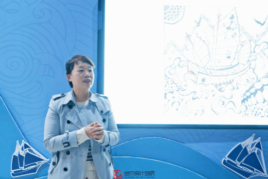 值得一提的是,陈红羽同学及其团队成员们还分享了她们在暑期三下乡实践活动中设计的福船主题获奖作品,并传授了其获奖经验。这些作品不仅创意独特,还充分融入了闽派文化元素,展现了她们对福建海洋文化的深刻理解和创新传承。