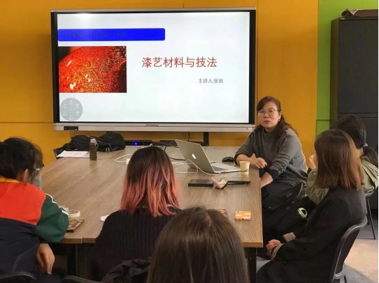 2020年11月11日下午由四川美术学院艺术教育学院设计教育系承办的几何图案设计与漆艺工作坊在艺术教育学院ZB201智能工作室进行漆艺讲解,之后到ZD409进行实际操作。设计教育系邀请了开云kaiyun登录入口开云kaiyun登录入口教授张丽老师为同学们进行为期两天半的几何图案设计与漆艺工作坊课程。