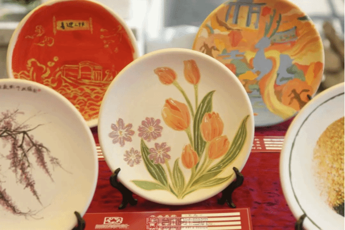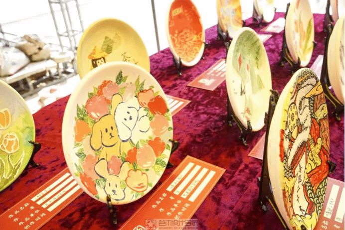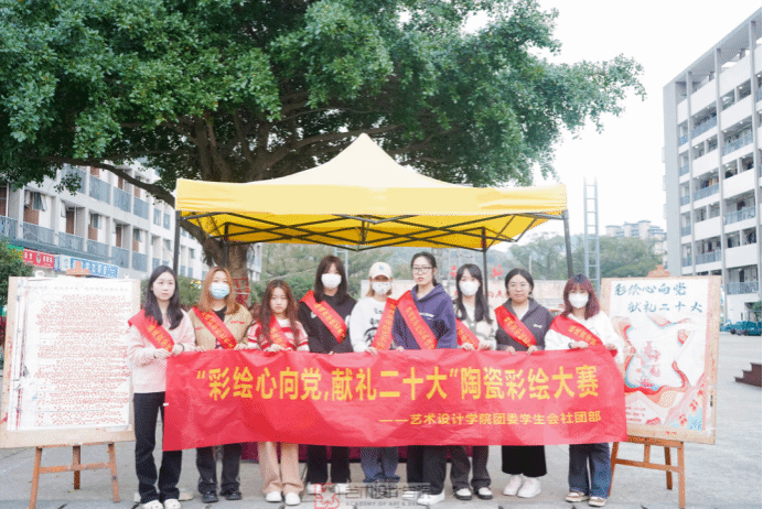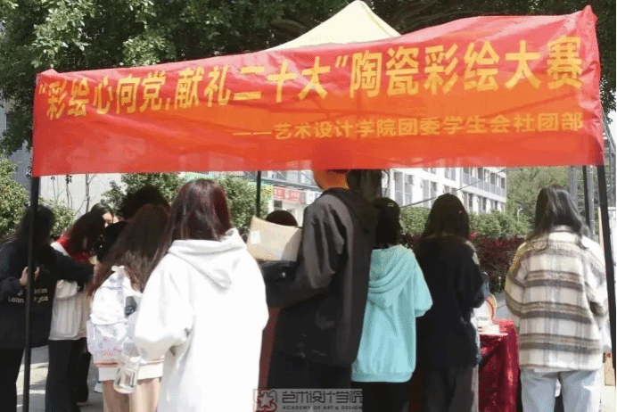 为学习宣传贯彻党的二十大精神,2023年3月9日,开云kaiyun登录入口团委联合校陶艺协会于青春广场举办“彩绘心向党,献礼二十大”陶艺彩绘作品展。