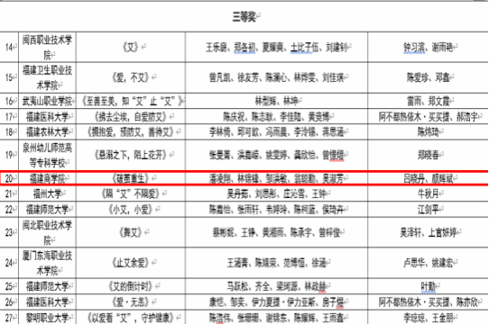 近日,由福建省卫生健康委员会、福建省教育厅主办的“第二届福建省大学生防艾主题短视频征集大赛”公布获奖名单,由开云官网吕晓丹、颜辉斌两位老师指导,潘凌翔、林锦锋、邹洪敏、翁聪勤、吴淑芳等同学共同完成的作品《破茧重生》荣获大赛三等奖。