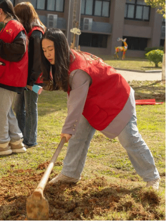 师生们在后勤园林师傅的帮助下学习了植树的要点及相关知识。随后,大家便分工协作,挥锄挖土、扶树填坑、浇水培土,并以年级为单位挂牌,共同为校园增添新绿。参加植树的学生周惠雪说:“在植树中,我感受自然的美丽,也体验到劳动的快乐,今后我会继续以实际行动为建设绿色校园贡献青春力量。”学生郑婉琼说:“与同学朋友们共同栽下人生的第一棵树,心中充满成就感与自豪感。期待种下的树苗茁壮成长,成为校园中一道美丽的风景线,共同见证我们的成长。