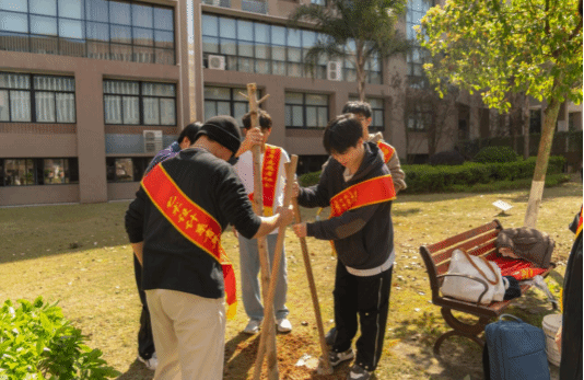 活动前,856名在校生以年级为单位,每人众筹一元不等,共同购买了四棵银杏树苗植树。银杏树作为长寿树种,寓意着学院和每一位学子的发展也将如同这些树木一样,茁壮成长,枝繁叶茂。