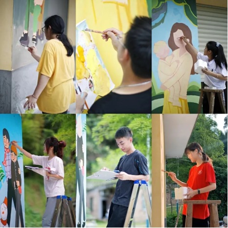 同学们分工明确,相互配合,不惧艰苦,顶着烈日,根据设计方案对每一幅墙绘精雕细琢,勾画着一幅幅赏心悦目的文化墙绘,这展现出了青年风采,更展现出我们艺设学子参与美丽乡村建设的热情。