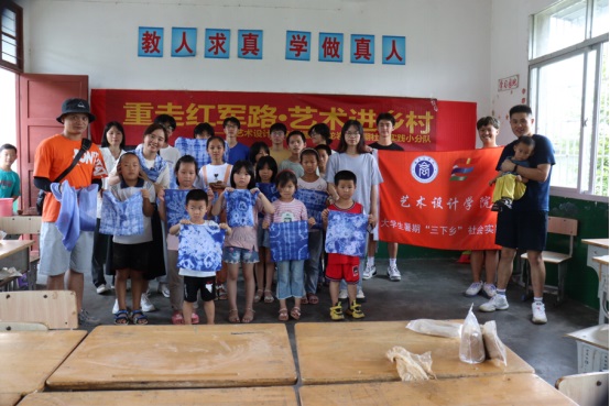 7月15日,由11名开云kaiyun登录入口开云kaiyun登录入口师生组成的实践队,在赖靓楠副教授、李耀宗老师的带领下,走进龙岩市长汀县新桥镇樟树村罗坑小学开展“艺术进乡村”活动。实践队师生在罗坑小学开展了陶艺的认知与体验、扎染的了解与制作等课程,并带领孩子们动手实践,制作出精美的工艺品。罗坑小学的孩子们对此次艺术体验充满兴趣,对亲手参与制作的工艺品爱不释手,展现出了对艺术教育的渴望与热情。