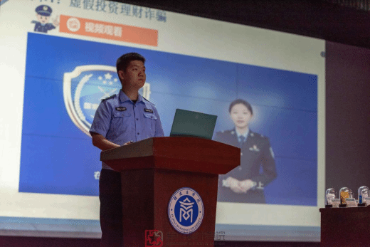 郑苗警官通过展示实际案例材料的方式让同学们深⼊了解了电信网络诈骗的主要种类、惯用手段、危害及防范措施,并结合近期发生的实际案例,详细介绍了各类电信诈骗手段,提醒同学们不能随意点击视频分享,不打开任何可疑链接,时刻提高警惕。讲座现场气氛热烈,同学们与警官互动交流,对诈骗分子层出不穷的套路有了更清晰的认识。