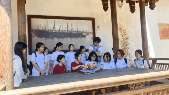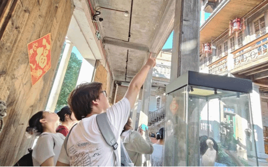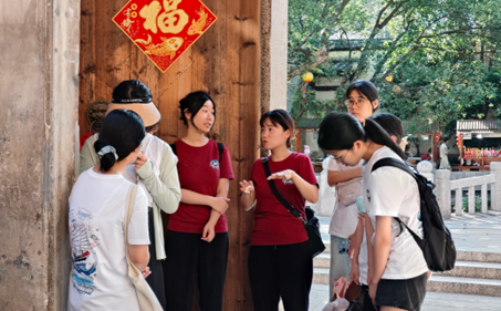 次日,实践队继续前行,走进闽商文化的殿堂。在古田会馆,数字科技让家风家训、诚信之光跃然眼前,队员们在会馆互动中感受深厚的历史底蕴。而下一站的永德会馆则展示了中西合璧的文化魅力,永春的纸织画与白鹤拳、德化的白瓷与纸狮等非遗项目交相辉映,为同学们带来了一场视觉与心灵的双重盛宴。