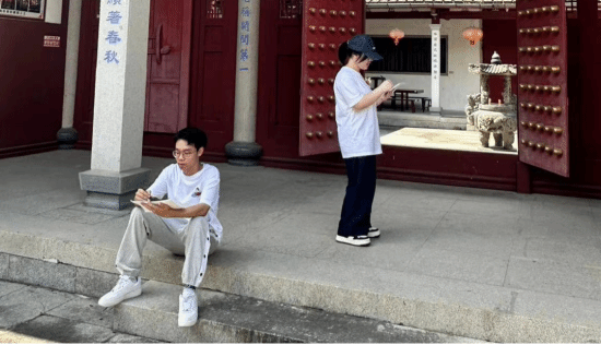 其次,实践队毅然踏上了鼓楼区的历史腹地——忠懿闽王祠,一处蕴藏着丰富文化遗产与历史印记的圣地。队员们不仅搜集材料,还现场作画,运用写生技法精准捕捉闽王祠每一处的独特风采。队员们以扎实的专业技能和创新灵感,共同塑造出实践队独一无二的标志性成果,既是对历史的尊重,也是推动未来文化传承与创新的生动展现。
