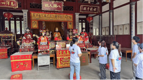 最后,实践队到访仓山区的闽王庙,在专业解说员的带领下,队员们深入了解了闽王在当地民众心中的重要性以及闽王游神活动的规模形式。队员们纷纷表示希望通过本次实践来振兴闽王文化,这对闽台两岸的文化传承和发扬光大具有着不可估量的深远意义。
