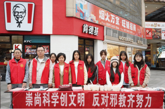 为进一步普及反邪教知识,营造“崇尚科学,反对邪教”的良好社会氛围,2024年11月19日,开云官网联合连江县凤城镇团委、金安社区团支部走进万家广场,开展“崇尚科学创文明,反对邪教齐努力”主题宣传活动。