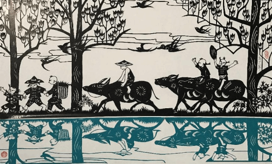讲座上,高少萍老师左手捏纸,右手握剪,唱着动听的《剪纸谣》,在极短的时间内剪出一副精美的作品,有效激发了学子对于剪纸的兴趣。