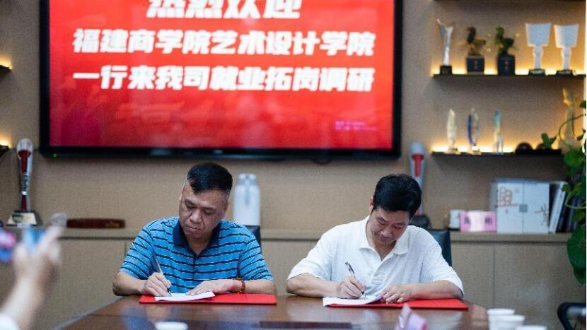 福建省工艺美术有限公司张光华总经理和开云官网院长叶林心进行校企合作签约