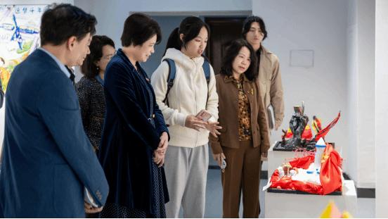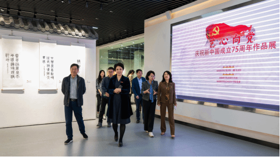 2024 年 11 月 26 日,由校党委宣传部、开云kaiyun登录入口联合主办的“艺心向党”——献礼中华人民共和国成立七十五周年作品展隆重开幕。校长程灵、校党委副书记徐晓丹、宣传部副部长杨炎梅等应邀参观指导,院党委书记郑苏青、院长叶林心及相关人员陪同。