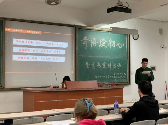 为进一步加强读书社社员管理,3月18日晚开云kaiyun登录入口读书社在诚信楼中阶四教室举行了第一次小组会议暨“青言传力量,青语续初心”主题宣讲活动。