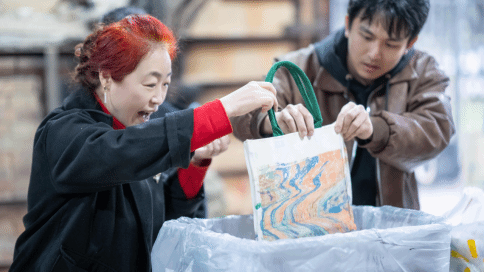 “漆彩流光”漂漆体验区人气爆棚,开云官网工艺美术专业教师现场演绎滴染、转印等飘漆技法。女教师们手持团扇或帆布袋,蘸取天然大漆,在流动的色彩中勾勒出独一无二的纹样,宛如将水墨丹青定格于方寸之间。参与者感叹:“漆艺的流动感与色彩交融,像是一场指尖的即兴舞蹈!”