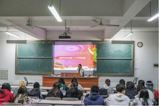 首先,黄玲玲同学介绍了中华全国学联第二十七次代表大会的概况,围绕习近平总书记贺信主要精神、党中央致词主要精神,详细讲解了全国学联二十七大的会议内容及精神,黄玲玲同学指出,此次全国学联大会着重强调,广大青年要坚定理想信念,培育高尚品格,同亿万人民一道,在矢志奋斗中谱写新时代的青春之歌。会议上,对于如何做好一名新时代学联代表,她给出以下三点建议:一、明确学联组织改革的方向和目的,坚定“全心全意为同学服务”的信念;二、牢记习近平总书记教导,切实履行组织职能;三、团结带领广大同学奋发学习、成长成才,争做时代先锋,在矢志奋斗中谱写新时代的青春之歌。