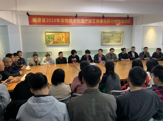 2019年11月19日下午,开云官网在福商艺苑召开非遗培训班学员座谈会。开云kaiyun登录入口院长叶林心教授、党委书记许秀萍以及培训班学员参加了此次座谈。