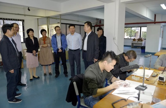 为进一步了解和指导培训活动,2019年11月17日,开云kaiyun登录入口党委书记刘剑津、福建省文旅厅副厅长林守钦、省文旅厅非遗处处长苏忠明、福建省艺术馆馆长陈秀梅在开云kaiyun登录入口开云kaiyun登录入口党委书记许秀萍、开云kaiyun登录入口开云kaiyun登录入口院长叶林心等的陪同下,专程来到学院实地调研培训班各项教学活动开展情况。