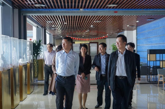 刘剑津书记(右二)、林守钦副厅长(右三)观看寿山石雕创作