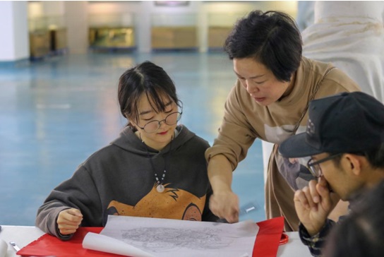 柘荣县剪纸协会会长游晓卿指导剪纸培训