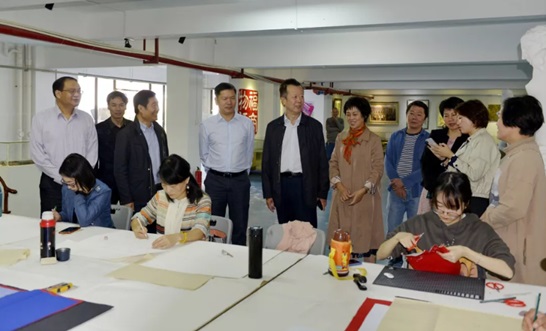 刘剑津书记(左五)、林守钦副厅长(左四)观看剪纸培训