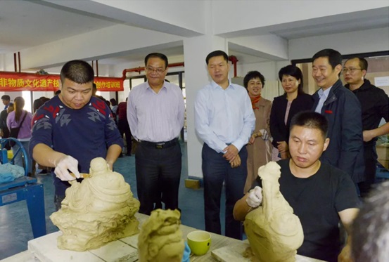 省文旅厅林守钦副厅长(左三)观看学员创作陶艺作品
