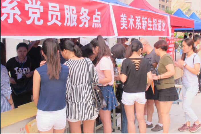 2014年9月10日,伴随着教师节的到来,我系新生大军也陆续前来报到。在9月初我们商业美术系进行了一系列的工作安排接待来校的新生。第二天天还没亮,我系的工作人员就早早的来到各自负责处等候新生了。他们不辞辛苦,耐心地为师弟师妹介绍学校的情况,并带领师弟师妹们去购置生活用品。我系的同学们不怕劳累,见到师弟师妹来了便主动帮他们把行李搬上楼,同学们的热情给了师弟师妹们温暖,消除了他们步入新环境的陌生感。直到晚上9点,我系2014级新生接待工作才渐渐进入尾声······