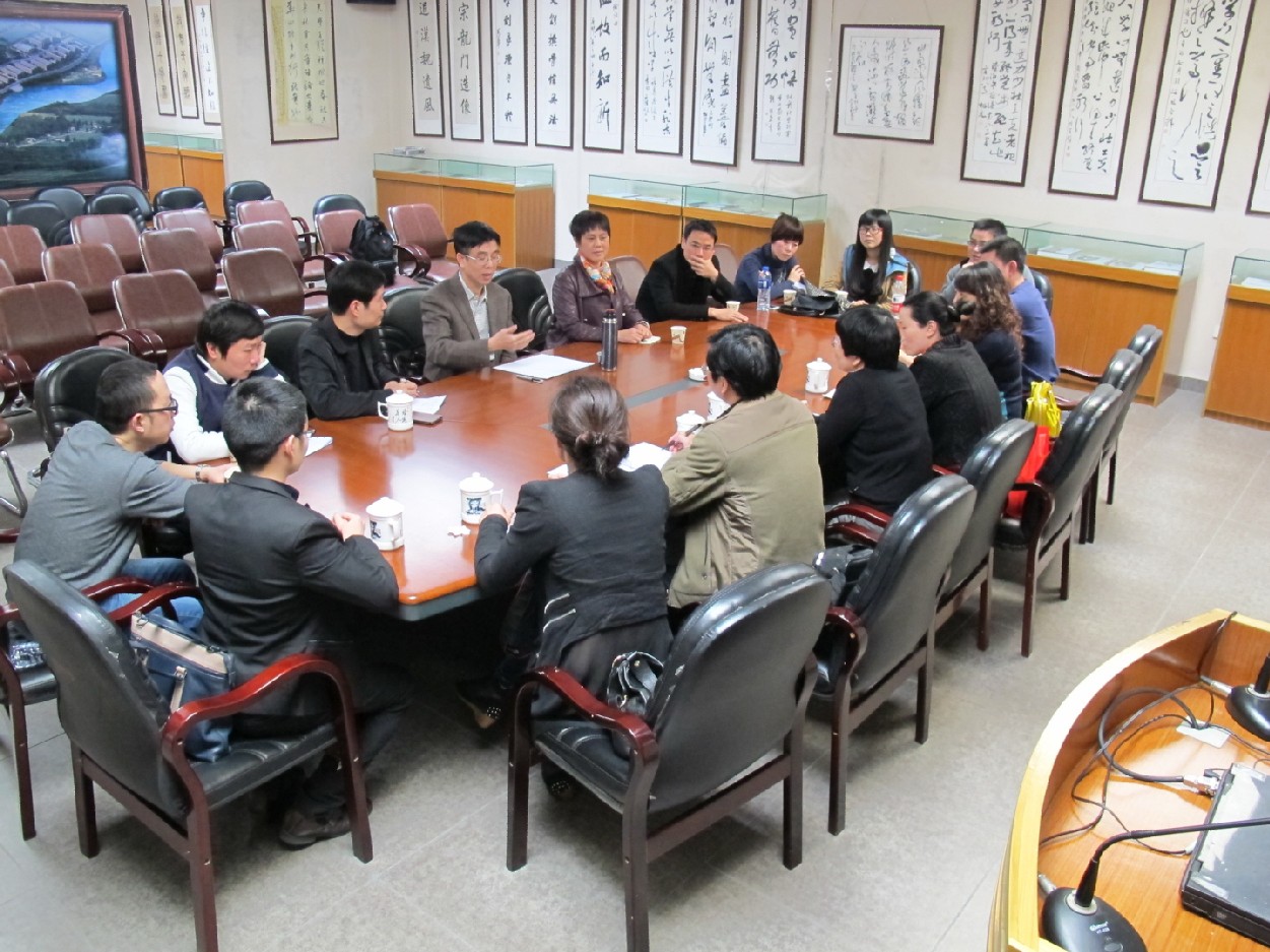 2013年4月11日下午,福建省柘荣县副县长胡宁、县文化体育新闻出版局局长吴恩银带领柘荣县部分民间剪纸艺人莅临我校,与我校商业美术系洽谈学校、地方合作项目事宜。合作会议在校会议厅举行,福建商专黄克安校长、美术系主任叶林心、书记许秀萍和部分美术系专业教师出席此次会议。会议由黄克安校长主持,在隆重热烈的气氛中黄校长向客人们介绍了我校和美术系的发展情况、双方的今后合作项目的展望。胡宁副县长也畅谈了在商专新校区参观的诸多美好感受,希望能从诸多细节落实上促进学校、地方的长期合作。