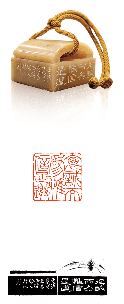 篆刻艺术来源于我国独有的象形文字,起于周秦,兴于明清。篆刻艺术随时代而变化,有其背景与条件。浙派诸家专摹汉印,无论矣。自邓石如出,其文往往参合周秦金石文字。赵之谦取秦权,吴昌硕得石鼓文,丁佛言肆意于毛公鼎、散氏盘及殷墟契文。文变刀亦变,用意何尝不古。且缪篆刻印,为汉六体书之一,亦唯文字源流之确审,书法正变之务究,而后使刀如笔,可达于朴至雅醇之境。篆刻艺术赓续不绝,其间少不了众多承前启后、继往开来的印人传导。